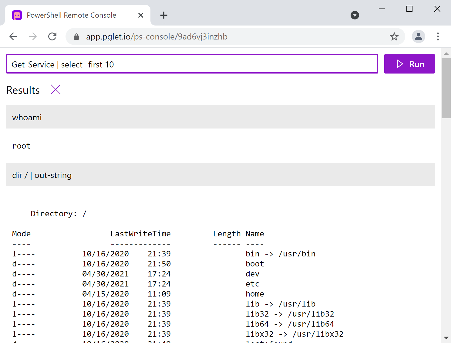 After publishing this post on Reddit PowerShell community we received great feedback about security. Currently Pglet service is in preview and is not recommended for use in production. We are working on built-in authentication/authorization functionality at the moment. It's going to be "Login with GitHub/Google/Microsoft" OAuth at first plus OpenID for any other providers.